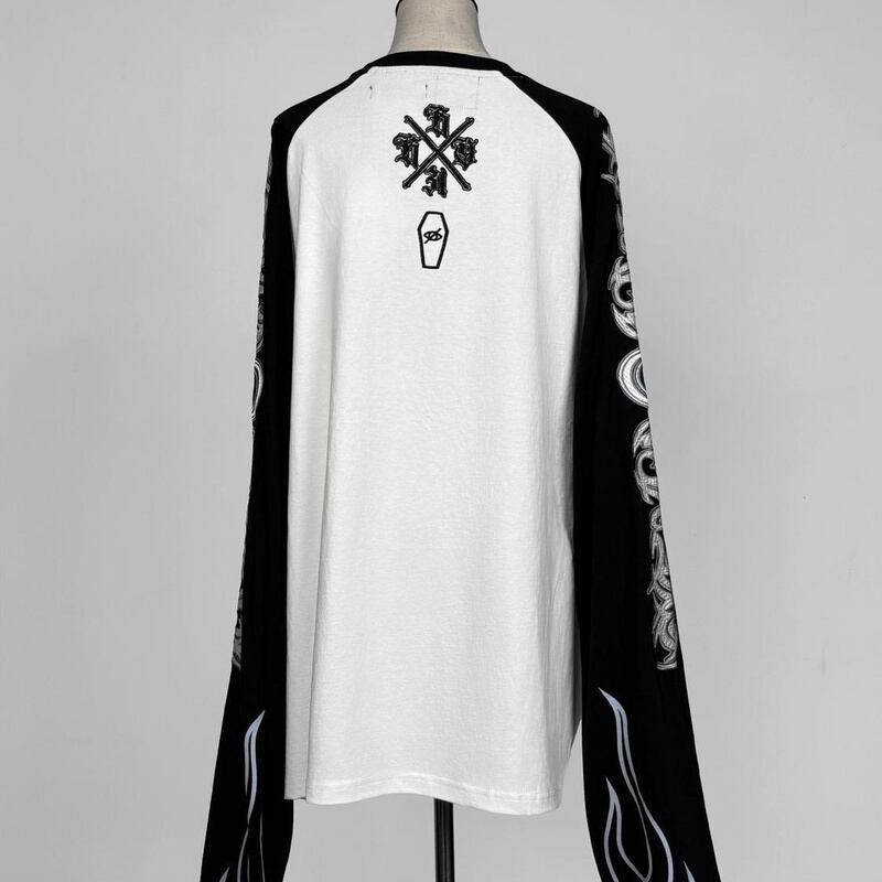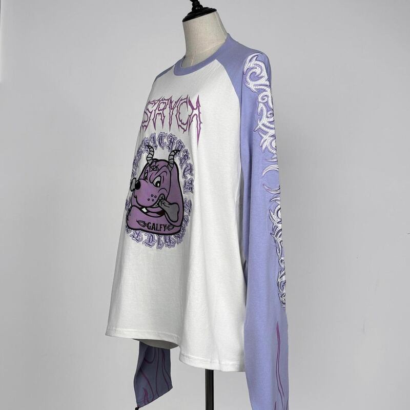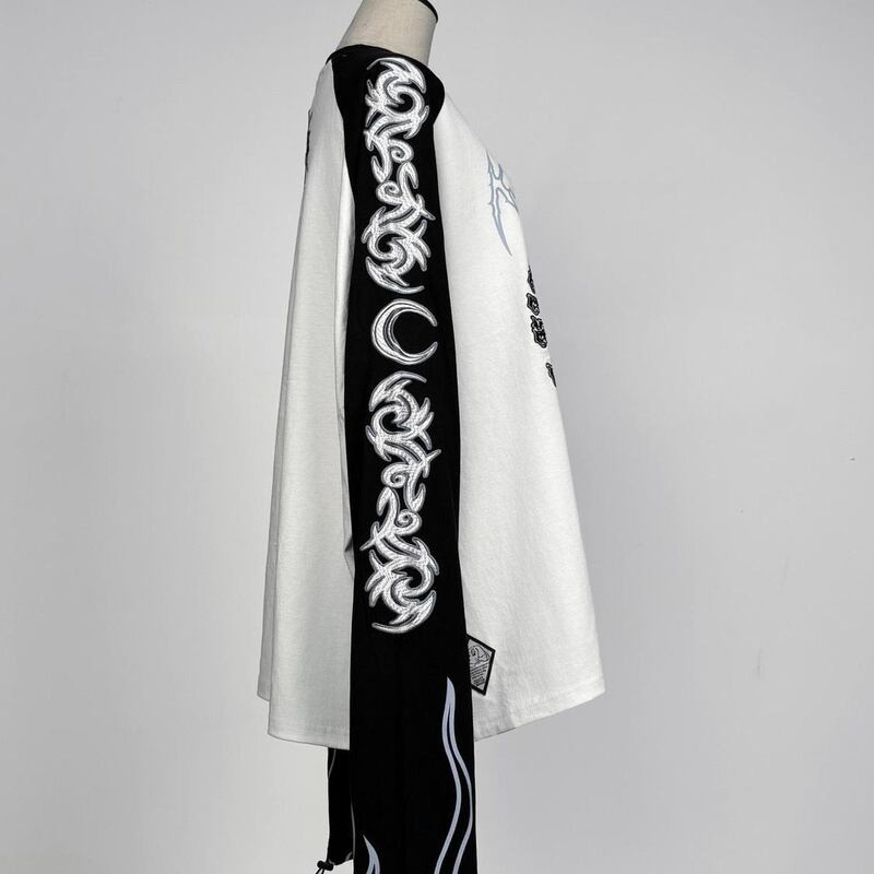 長袖 Tシャツ レディース 原宿系 炎 刺繍 オーバーサイズ 萌え袖 ストリート 派手
