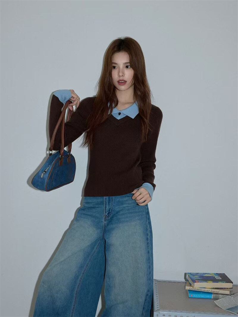 2025年INS 秋冬新作 気質 おしゃれ インナー スリムフィット ポロカラー トップス