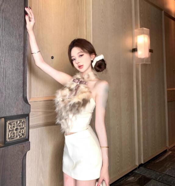 秋冬トップス ベスト ジレ タンクトップ フェイクファー ノースリーブ