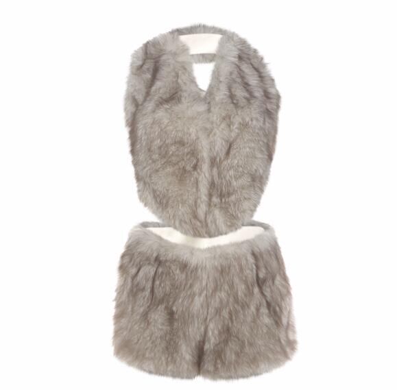 秋冬トップス ベスト パンツ セット フェイクファー ファッション ベアトップ