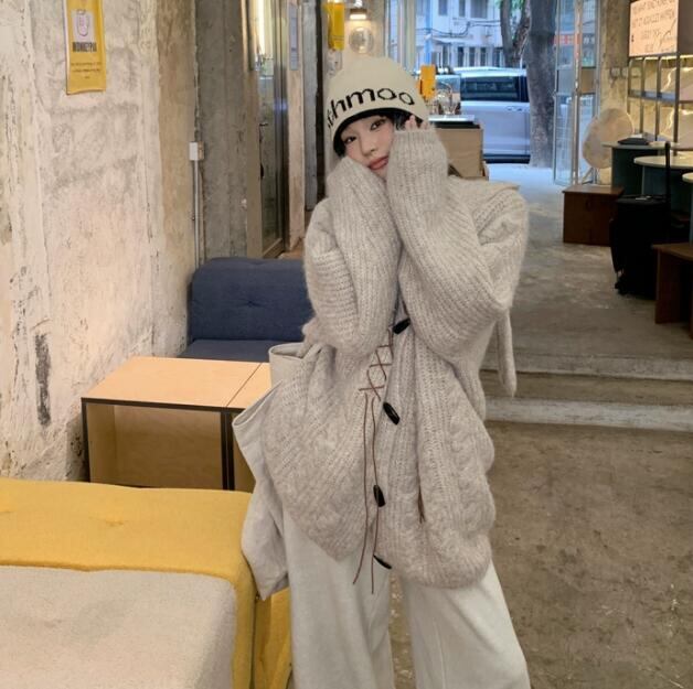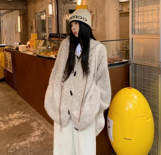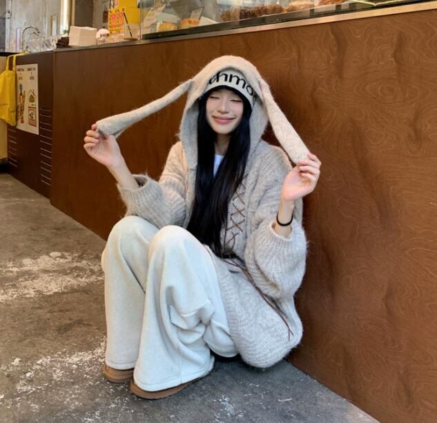秋冬トップス セーター ニット フード付き カーディガン 兎耳 レディース