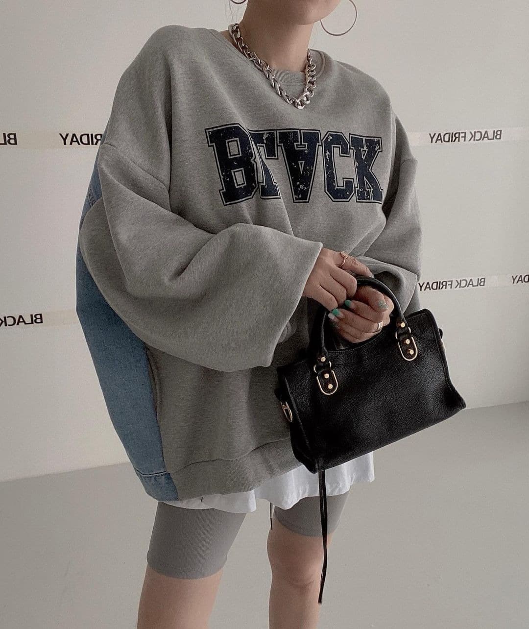 2025年INS 秋冬新作 気質 おしゃれ 三色パッチワーク デニムプリント ルーズスウェット