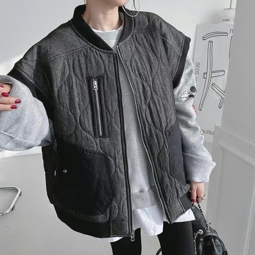 2025年INS 秋冬新作 気質 おしゃれ スタンド ルーズフィット パッチワーク 綿入りベスト