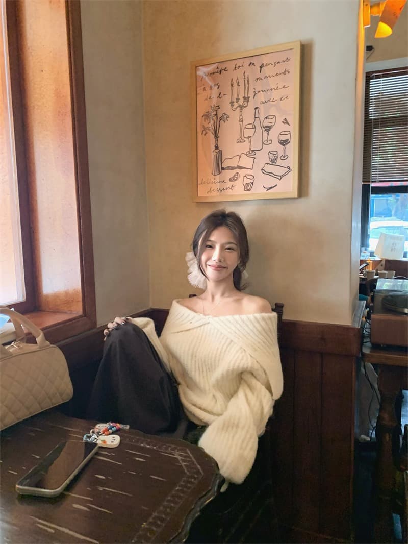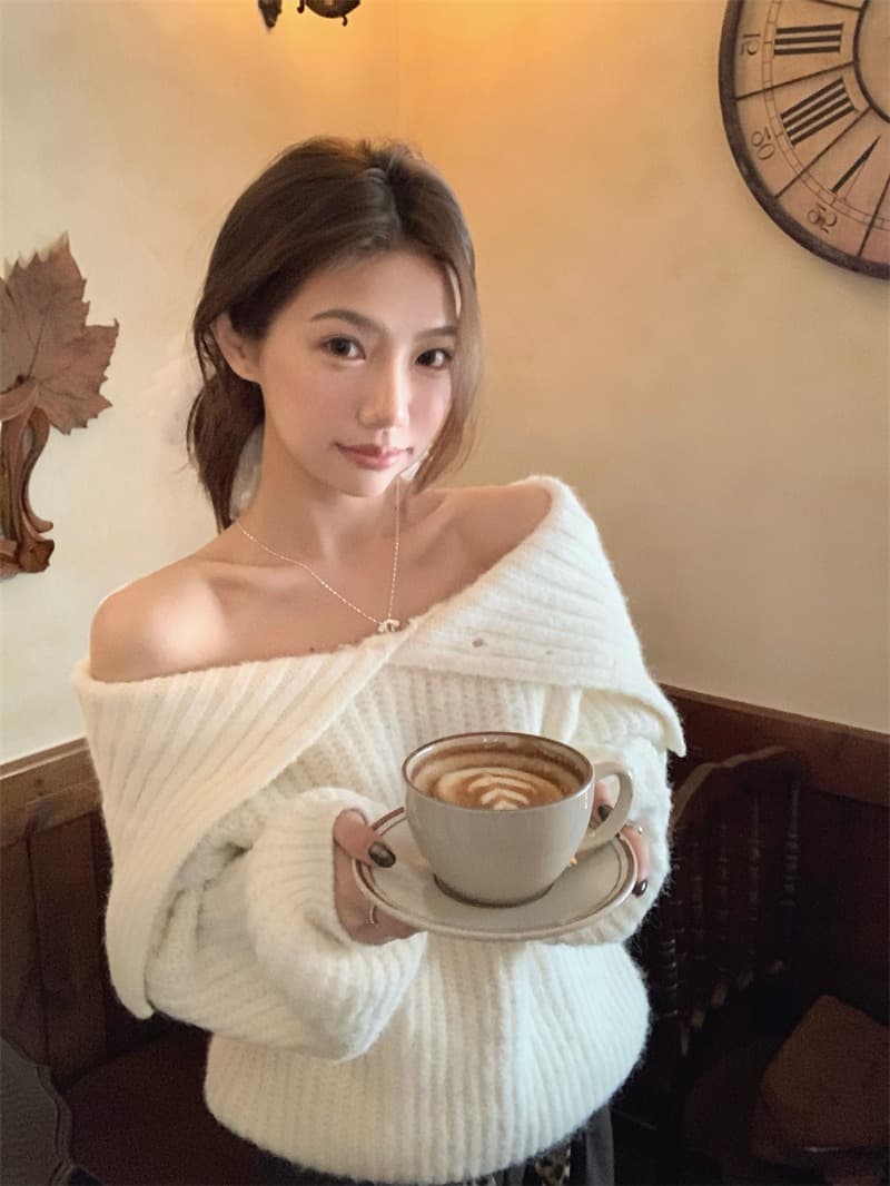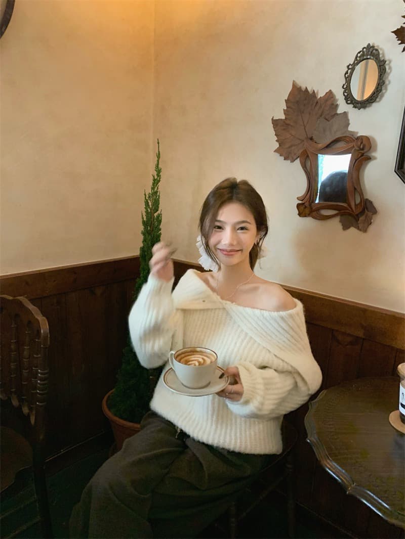 2025年INS 秋冬新作 気質 おしゃれ ラージラペル 厚手 ニットセーター