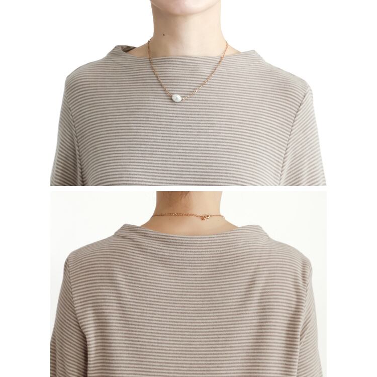【日本製素材】TEIJINの吸湿発熱素材『ソリストヒート』デザインボーダーチュニック 暖か 機能性 お洒落