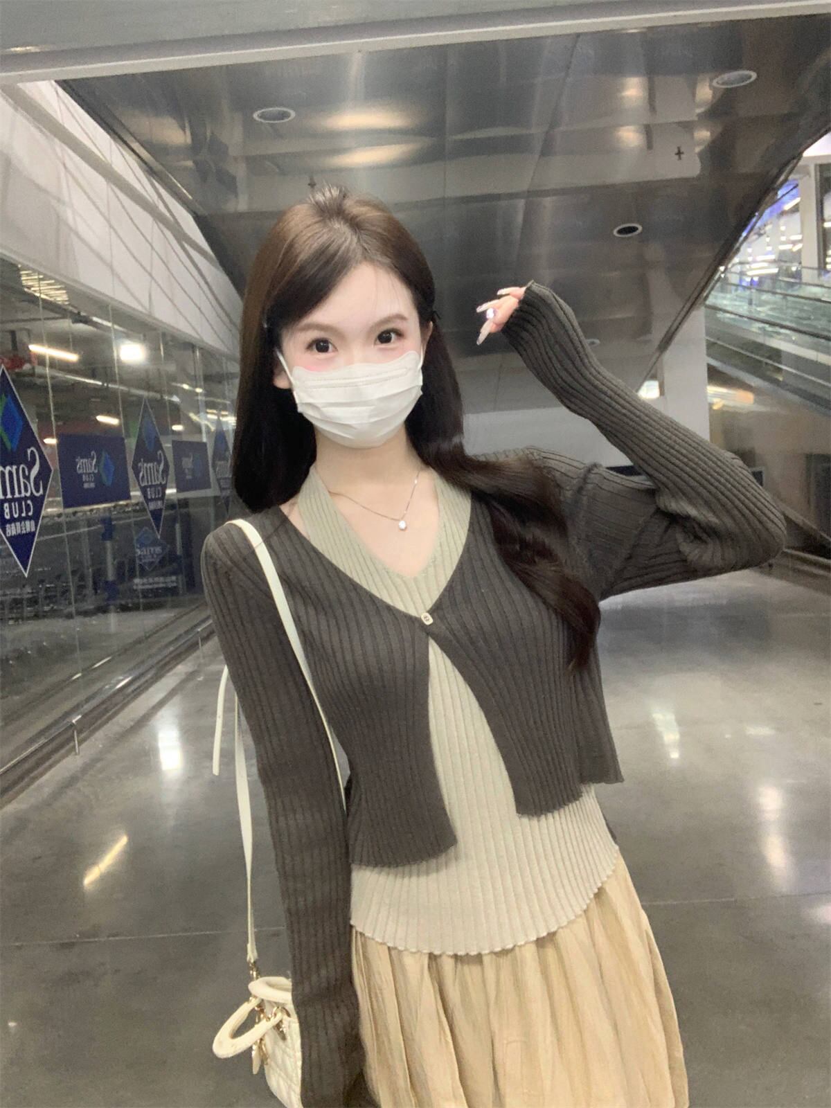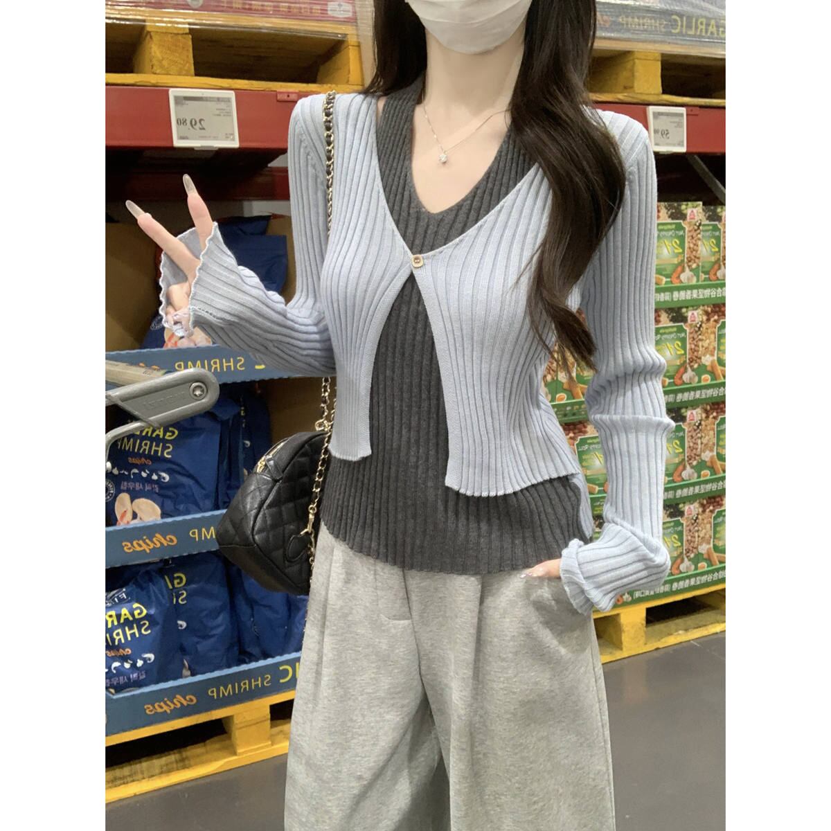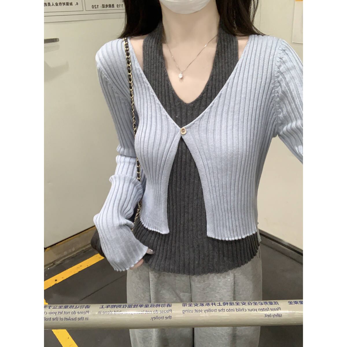 2025年INS 秋冬新作 気質 おしゃれ フェイクツーピース ハンガーネック インナー トップス