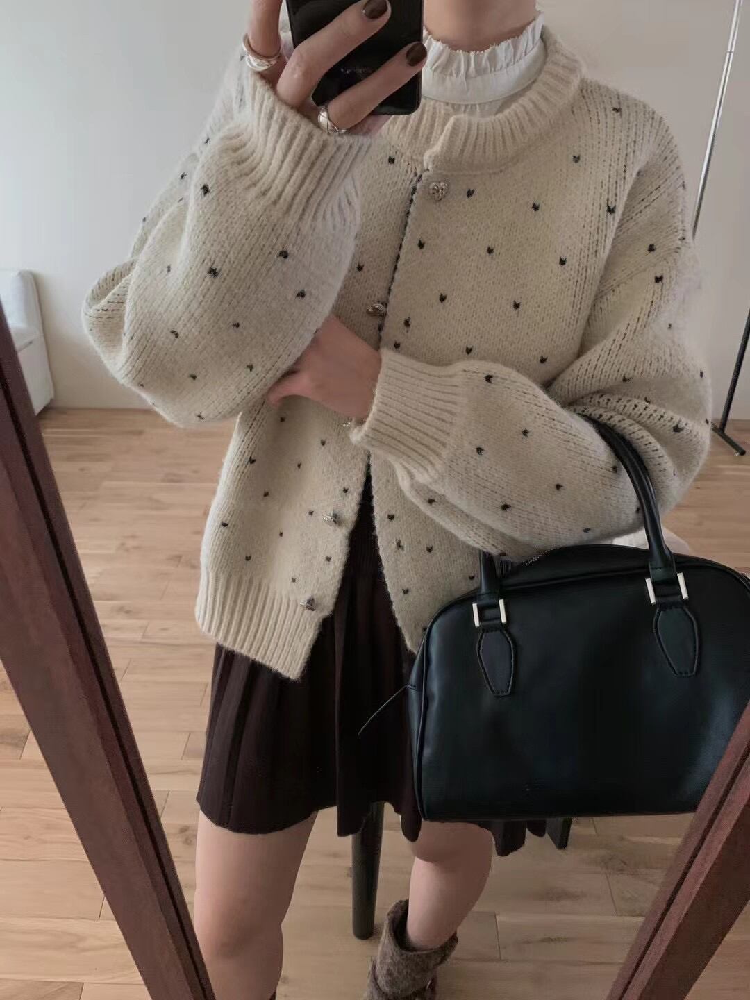 2025年INS 秋冬新作 気質 おしゃれ 高級感 厚手 長袖 水玉柄 ニット カーディガン