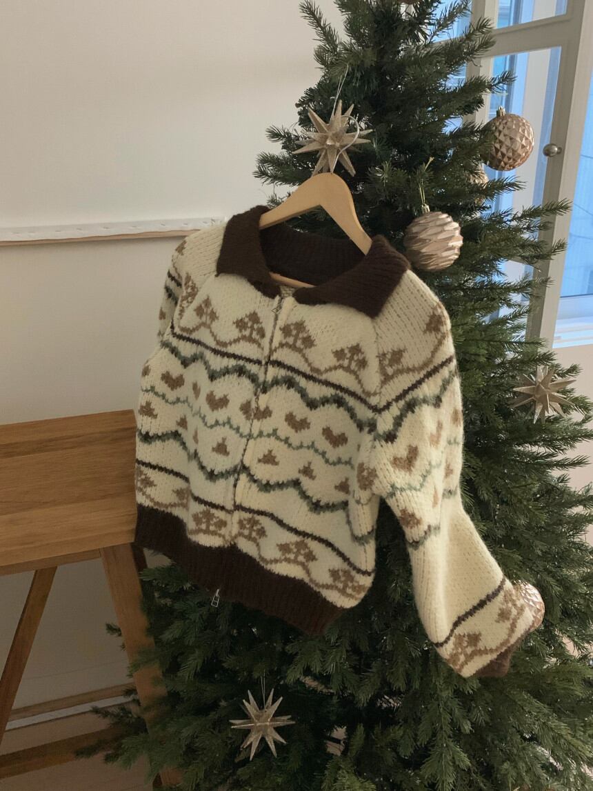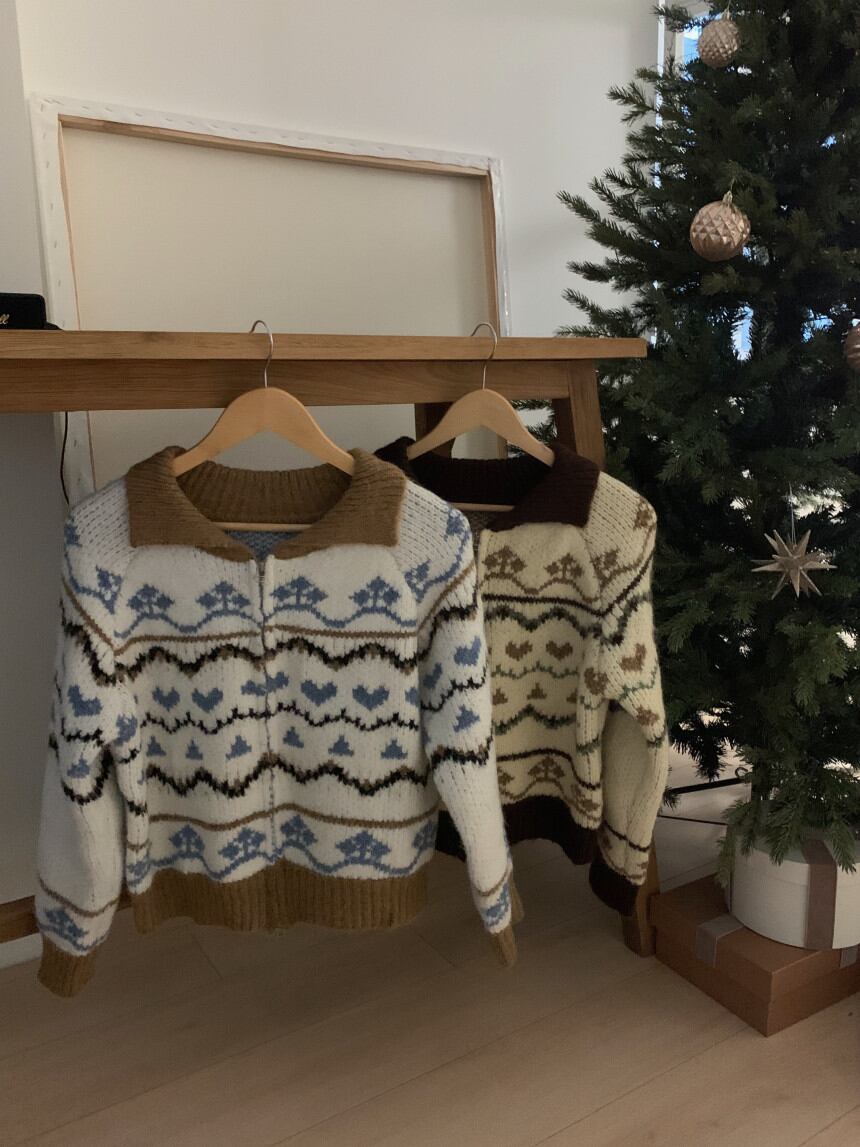 2025年INS 秋冬新作 気質 おしゃれ ジャカード柄 ジッパー ニット カーディガン