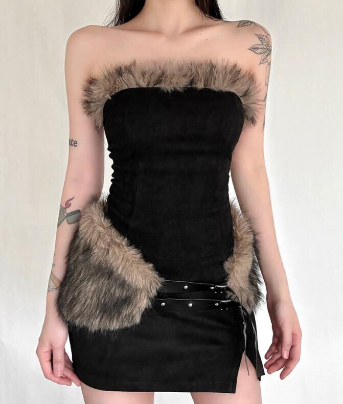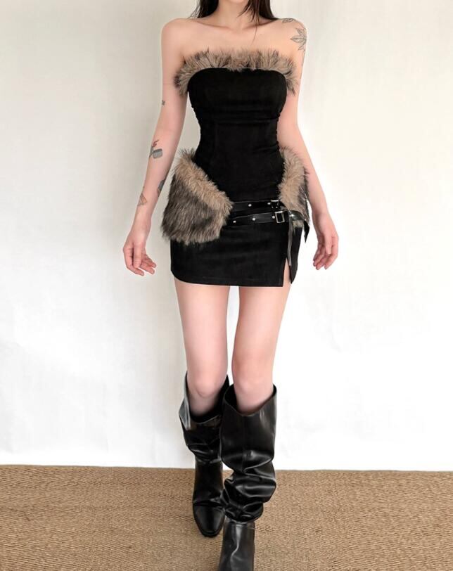 秋冬トップス ジレ チューブトップ ベアトップ スカート ベルト付属