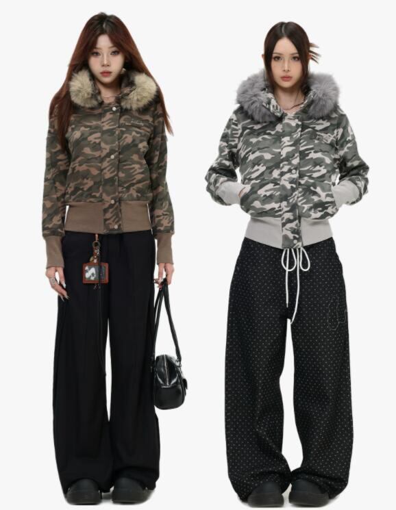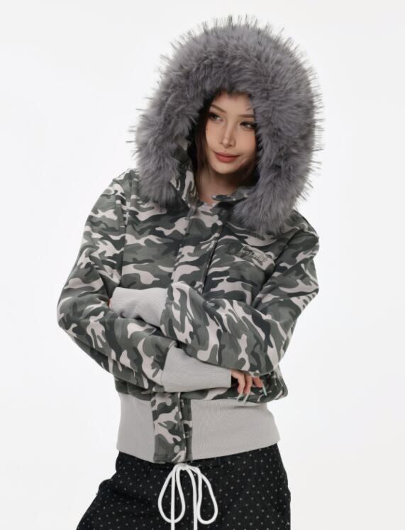 秋冬トップス トレーナー スウェットパーカー フェイクファー カモフラージュジャケット
