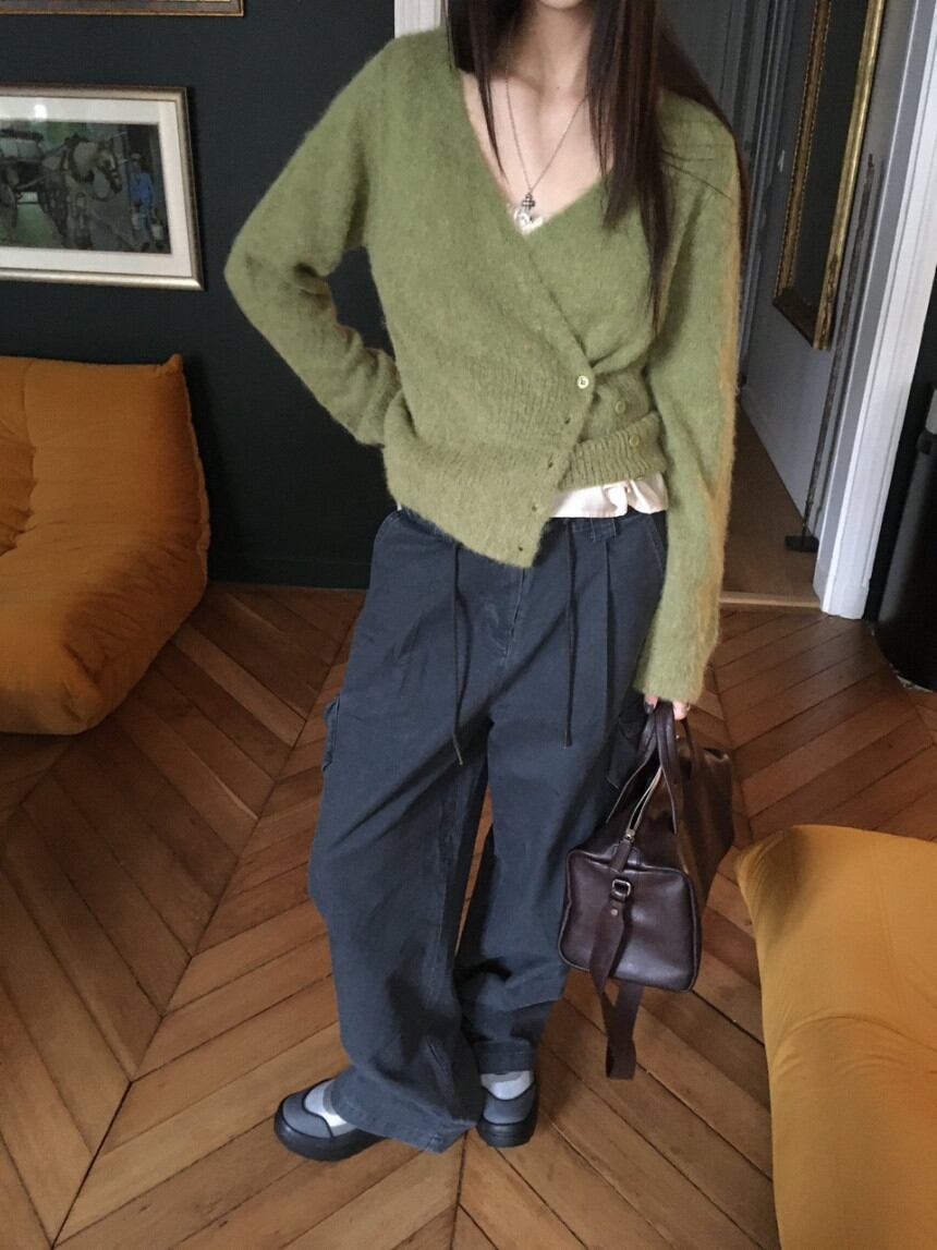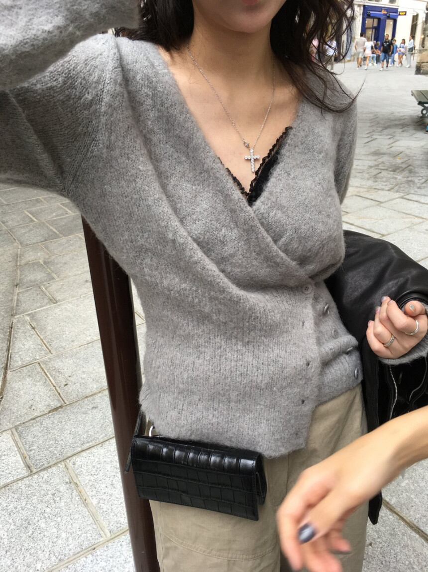 2025年INS 秋冬新作 気質 おしゃれ デザイン性 斜めボタン スリム セーター トップス