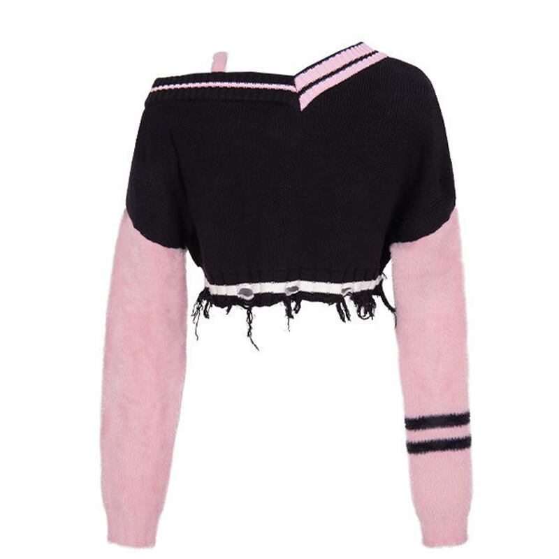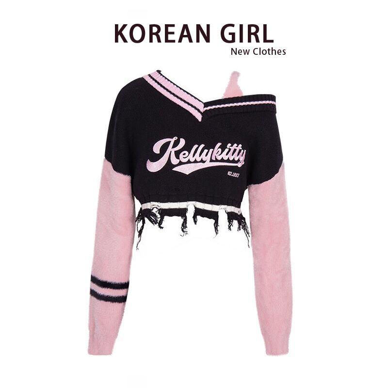 ピンクオフショル ニットトップス レディース 秋冬 ガーリーカジュアル