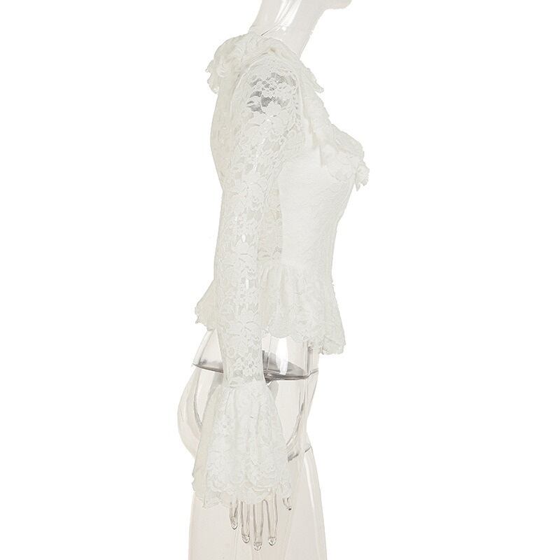 レースフリル 前ボタン ショートブラウス レディース 花柄風 可愛い系