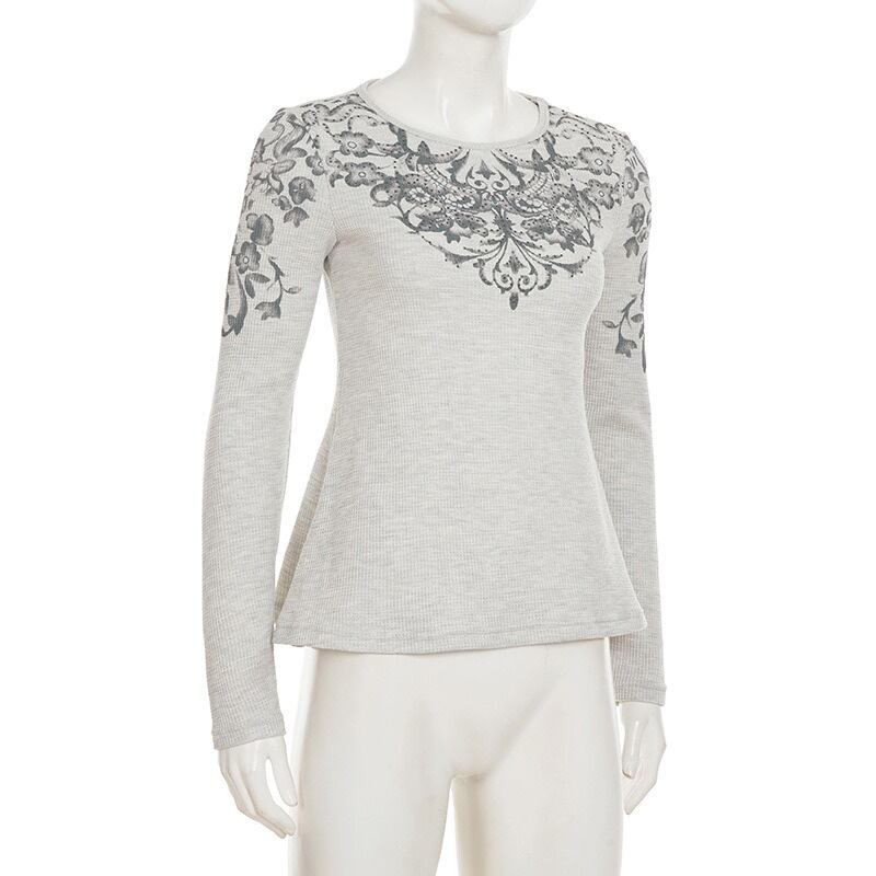 ワッフル生地 長袖カットソー レディース ゆったり体型カバー おしゃれ
