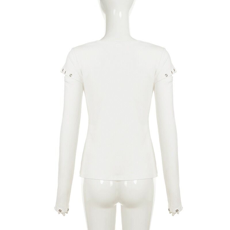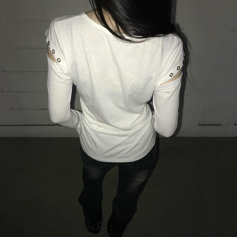 クロス柄 ニット長袖Tシャツ レディース 修身シルエット シンプルデザイン