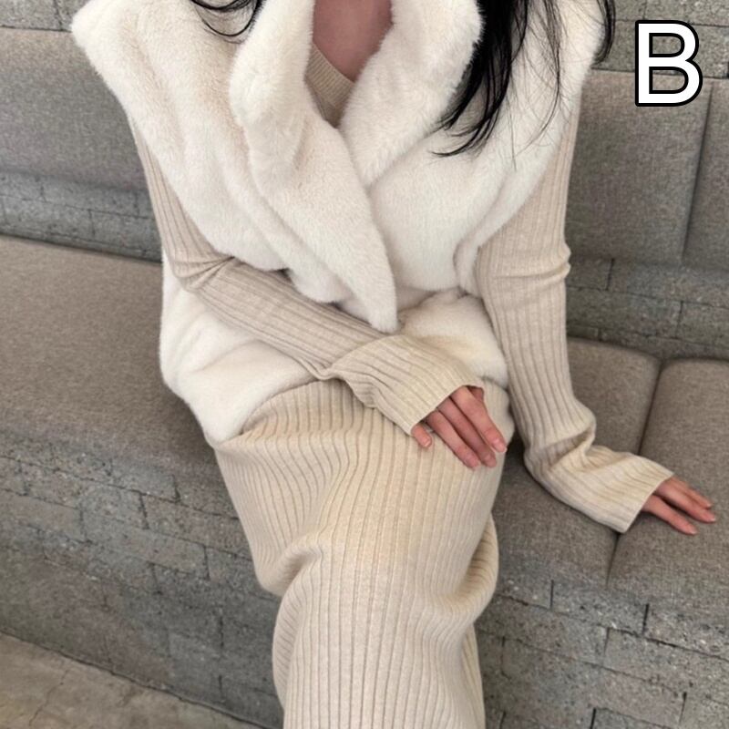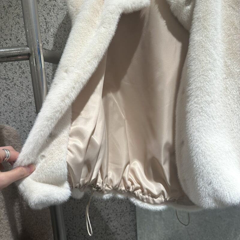 名媛風 ふわもこハイネック フェイクファーベスト ドローコード付き