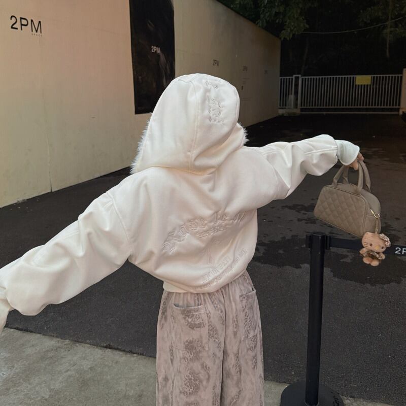 2025年INS 秋冬新作 気質 おしゃれ 厚手 ショートレングス 白い フリンジ フード パーカー