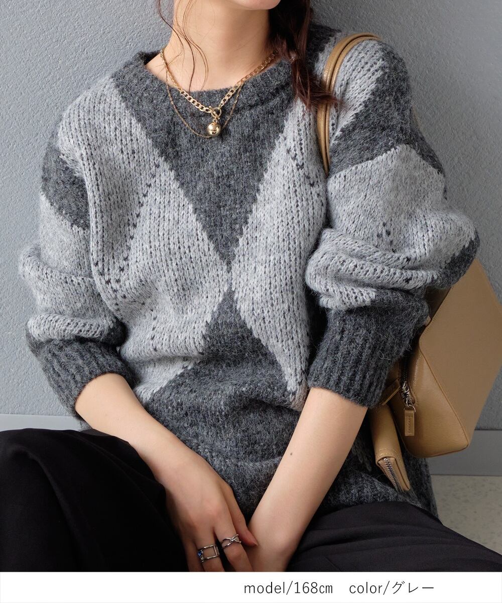【2025新作商品♪】アーガイル柄MIXニットトップス