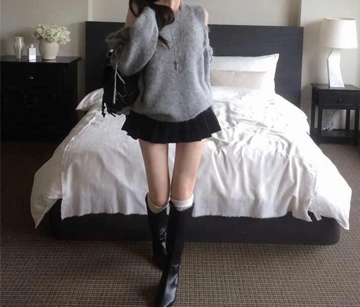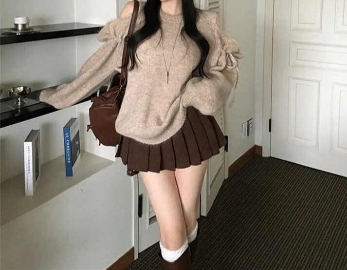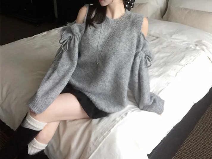 2025年INS 秋冬新作 気質 おしゃれ デザイン性 ニット オフショルダー トップス