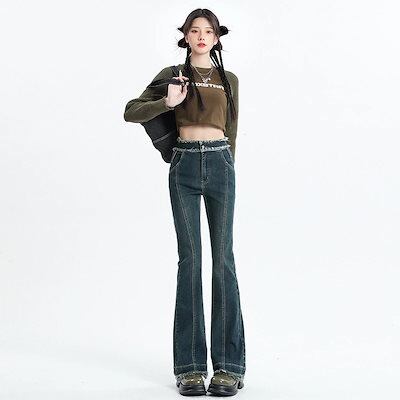 デニムかっこいいスラックスパンツ25の新作ハイウエストマイクロラッパ デニムパンツ おしゃれ パンツ レディース ワイドレッグ ゆったり 見えやせ カジュアルパンツ 垂れ感