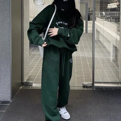 アメリカンレトロカジュアル セットアップ レディース スウェット上下セット ゆったり衛衣パンツ 2点セット