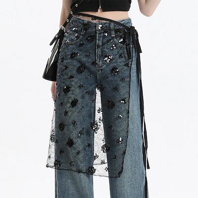 デニムかっこいいスラックスパンツ25の新作デニムパンツ レディース ワイドレッグ 見えやせ ハイウエストゆったり 垂れ感 ファッション