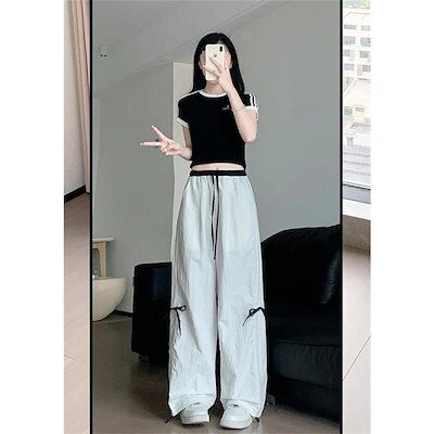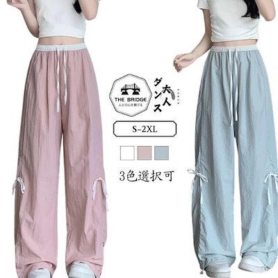[入荷]ダンスパンツ 白 ピンク 青 ジャージ ダンス 衣装 レディース 韓国風 ボトムス ロングパンツ 長ズボン リボン飾り ゆったり ダンスパンツ ジョギングパンツ 運動