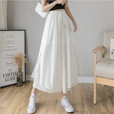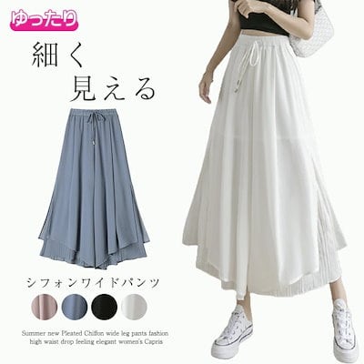 シフォンワイドパンツ ガウチョパンツ グロッシープリーツ 裾メロープリーツワイドパンツ 細く見える 細身 セルフカット リブフレアパンツ レディース ゆったり 綺麗