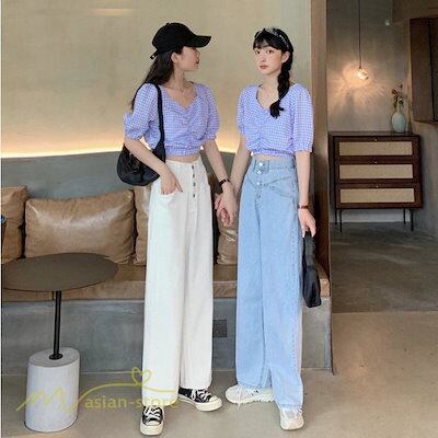 デニム レディース カジュアル 着痩せ ハイウエスト ロングパンツ 2021新作 ワイドパンツ ゆったり おしゃれ ジーンズ デニムパンツ ポケット カジュアル 女性