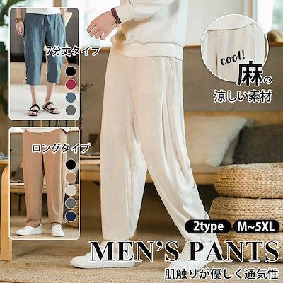 リネンパンツ 綿麻 サルエルパンツ 2タイプ ロング丈 パンツ 七分丈 新作 シンプル メンズ リラックス パンツ ナチュラル 普段着 部屋着 ゆったりシルエット 薄手 無地 ズボン ハロンパンツ 定