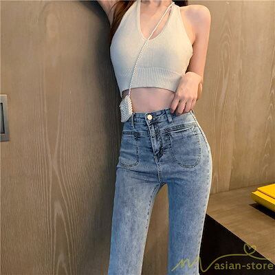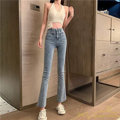 ベルボトムパンツ デニムパンツ レディースパンツ ワイドパンツ ハイウエスト ジーンズ デニム ボトムス デニムズボン ロングパンツ ゆったり