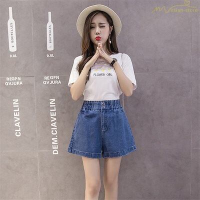 デニムパンツ ショート丈パンツ ゆったり ハイウエスト リラックス感 ファッション 体型カバー ウエストゴム ポケット付き 通勤 レディース 細身 無地