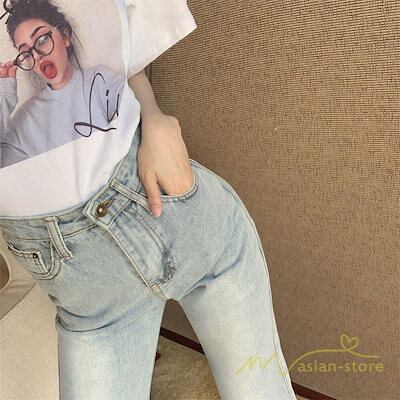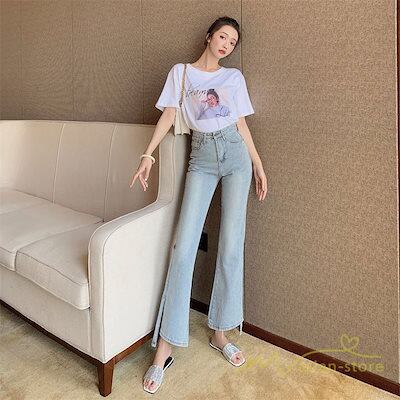 デニムパンツ レディースパンツ ストレートパンツ ハイウエスト ジーンズ デニム 春 夏 ボトムス デニムズボン レディースファッション ロングパンツ ゆったり