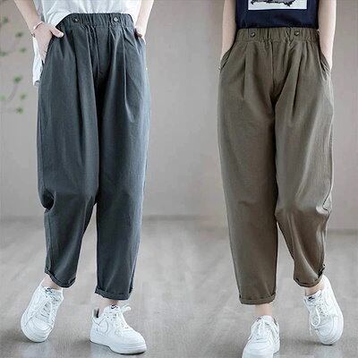 テーパードパンツ レディース カジュアル 細身 綿混 ハロンパンツ 薄手 9分丈 レディース ゆったり 着痩せ カジュアル リラックスパンツ シンプル ボトムス オフィス
