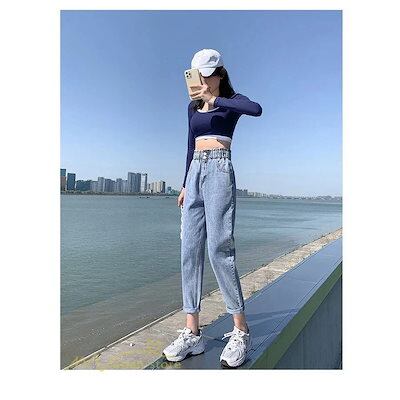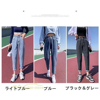 デニムパンツ レディース ロング丈 夏 新作 着痩せ ジーンズ デニム 無地 ハイウエスト テーパードパンツ おしゃれ ゆったり ワイド ジーパン 日常 大きいサイズ
