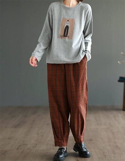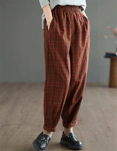 チェック テーパードパンツ 細身 レディース リネンパンツ リラックスパンツ イージーパンツ 綿麻混 春 秋 ボトムス リラックス ウエストゴム ゆったり 美脚 通勤 大人 着回し 定番