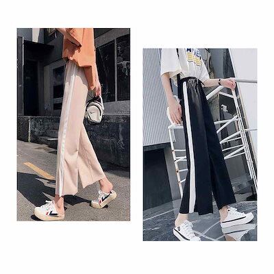 チノパン レディース ライン ストレート ワイドパンツ ストレッチ ゆったり ガウチョ ワーク オフィス 黒 おしゃれ ファッション カジュアル 大きいサイズ お洒落 大人