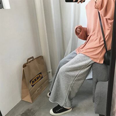 ワイドパンツ クロップドパンツ ゆったり ロング丈 パンツ ハイウエスト レディース カジュアル ベーシック ドローコード スウェット パンツ スポーツ スタイル ボトムス 落ち感 着やせ 細見え