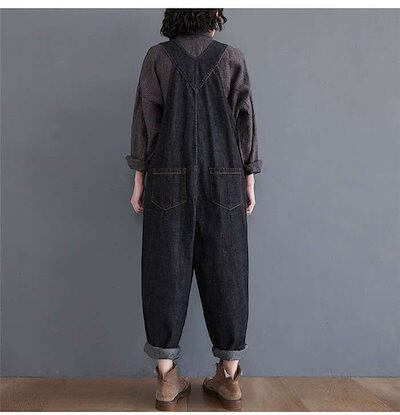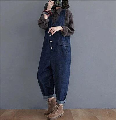 サロペット パンツ レディース デニムパンツ デニムサロペット Vネック オールインワン デニムロングパンツ サルエル ゆったり カジュアル 秋冬 大人