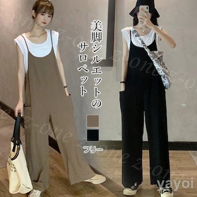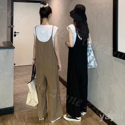 【急速発送 】サロペット レディース オールインワン マタニティきれいめ サロペ ゆったり ワイド パンツ 体型カバー 春 夏 秋