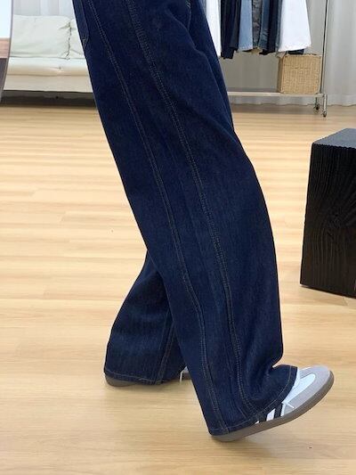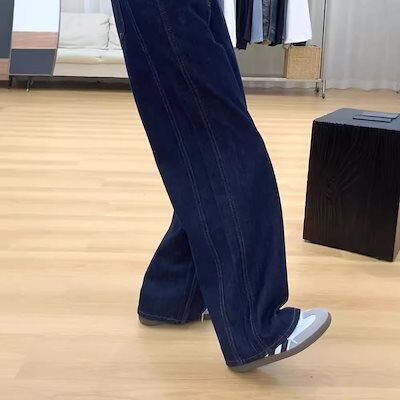 ネイビー ワイドレッグ デニム レディース 初秋 新作 デザイン感 レトロ ゆったり ワイドレッグ 痩せ見え ストレート パンツ