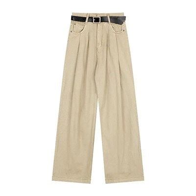 カーキ カラー カジュアル パンツ レディース デニム パンツ 新作 ハイウエスト 痩せ見え ゆったり ワイドレッグ ストレート ロングパンツ