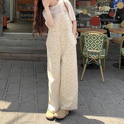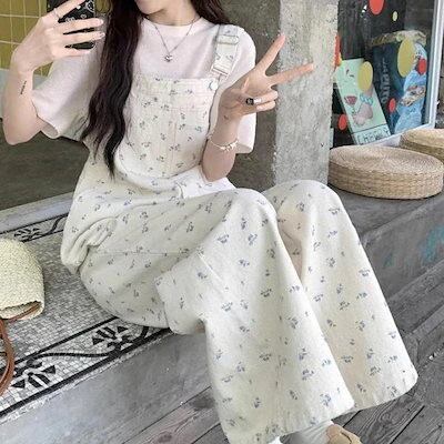 コーデ完成サロペット25新作 レディース レトロ花柄デニムパンツ ゆったり パンツ ワイドパンツ