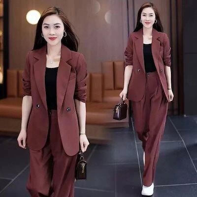 【110kgまで】大きいサイズ スーツセットアップ スーツ/ワイドパンツ二点セット レディース ゆったり 着痩せ 気質 通勤 ジャケット入園式 入学式 卒園式ママ スーツフォーマル 日韓ファッション