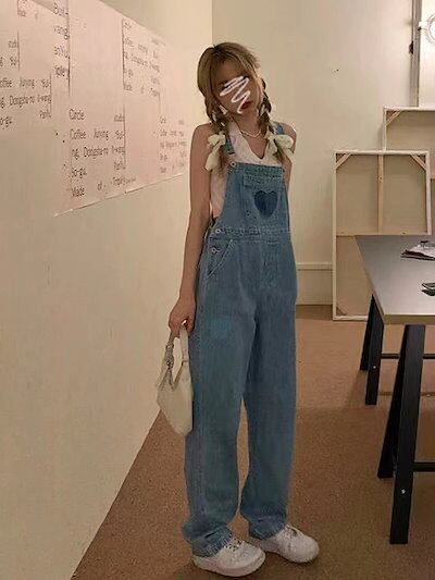 コーデ完成サロペット25新作 レディース デニムパンツ ハイウエストストレートゆったり パンツ ワイドパンツ