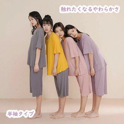 ブラカップ付き ゆるリラ パジャマ 半袖 長袖 ワンピース ウェア 涼しい レディース 薄手 ゆったり 大きいサイズ Tシャツ 七分丈パンツ 長袖パンツ