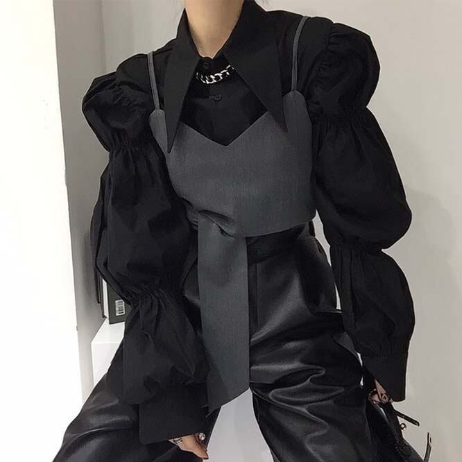 【秋新作】韓国風レディース服 ゆったり エレガント chic きれいめ 長袖シャツ&キャミソール セット