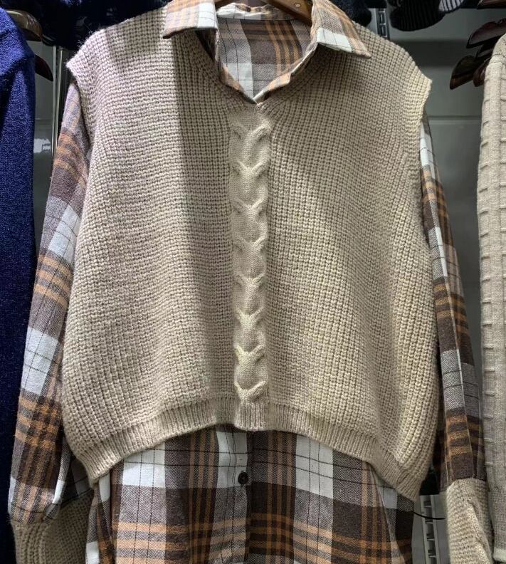 2025年春秋新作 レディース服 トップス シャツ チェック柄 ベスト ニット生地 セットアップ