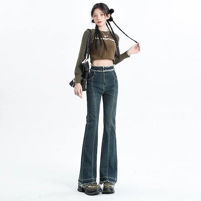 デニムかっこいいスラックスパンツ25の新作ハイウエストマイクロラッパ デニムパンツ おしゃれ パンツ レディース ワイドレッグ ゆったり 見えやせ カジュアルパンツ 垂れ感