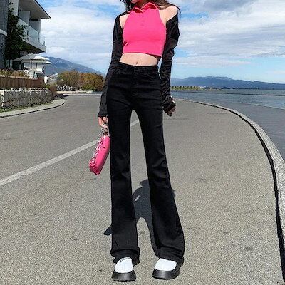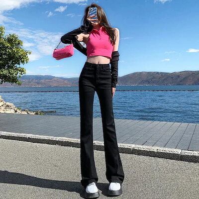脚長効果スキニーパンツ 薄い ラッパズボン ジーンズ レディース ストレート ゆったり ロングタイプ モップパンツ